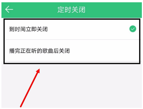 6、关闭方式也可以自由选择,这里提供了两种关闭方式,一是到时间直接关闭,二是听完正在播放的歌曲在关闭,大家可以根据自己的情况设置。