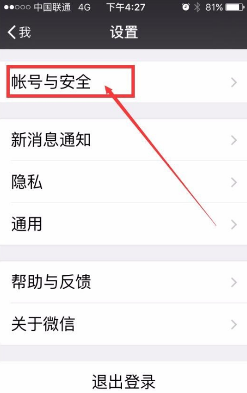 2、进入设置页面,选择“账号与安全”,如图,