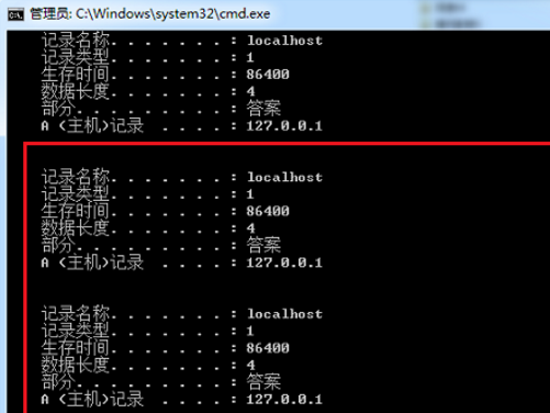 2、进去命令提示符界面之后,输入“ipconfig /displaydns”,按回车键可以查看以前使用的DNS地址记录,如下图所示: