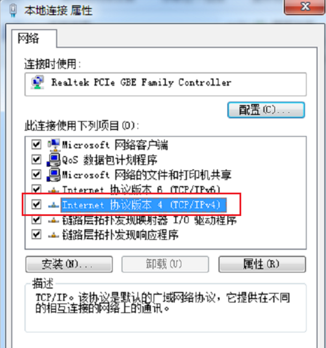 5、进去本地连接的属性界面之后,点击Internet协议版本4(TCP/IPv4),如下图所示: