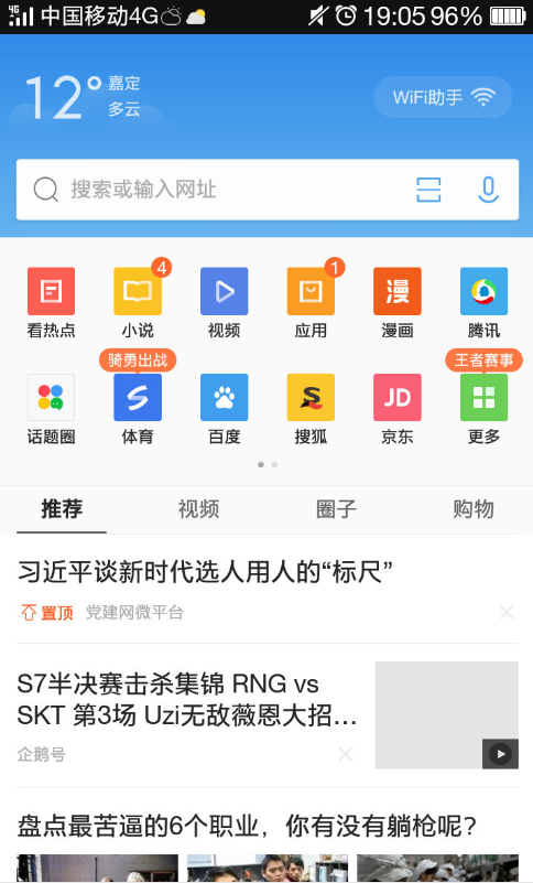 1、先在手机上打开QQ浏览器,如图,