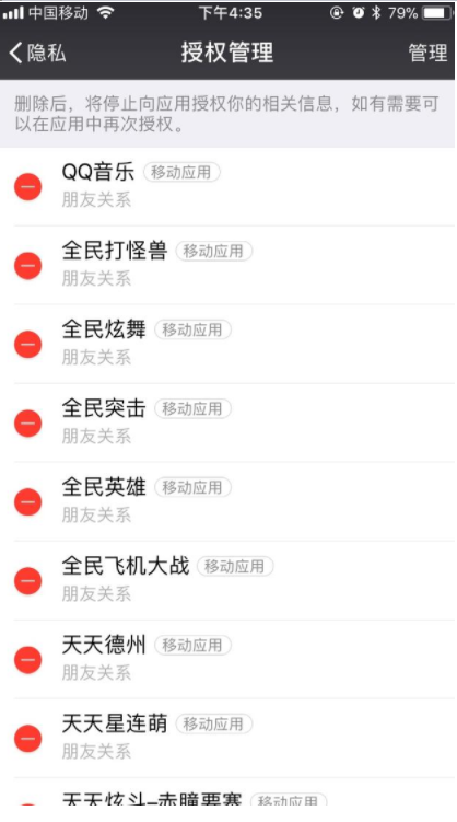 2、点击进入「授权管理」之后就可以看到微信授权的应用了。