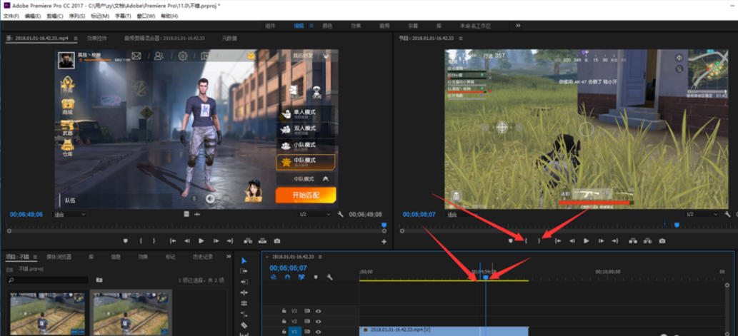 4、选择好之后,点击右上边的标记出点和标记入点,标记一下自己最搞笑的开场和末尾。