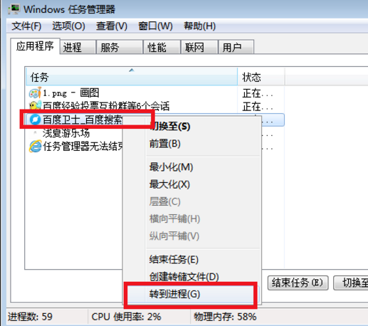 3、选择百度浏览器,直接结束就可以了。