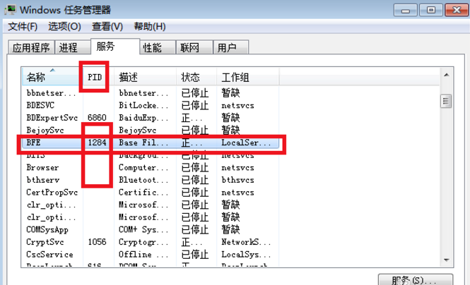 在服务栏找到相应的程序,记住它的pid码,比如我选择的这个是1284,