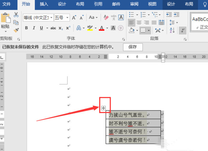 3、现在介绍简单的方法,当鼠标移动到表格区域时、在表格的左上角会出现一个符号,点击这个符号,点击之后整个表格都被选中;
