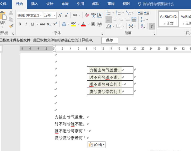 2、因为是逐个粘贴,文本自然没有边框,将表格中内容提取出来,需要重复多次,这个方法虽然简单,但如果内容较多就会浪费时间。