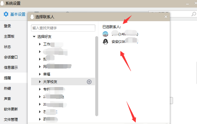 如果想要设置部分好友上线提醒,可以选择“以下好友上线提醒”,然后点击右侧的添加,把想要提醒的好友添加进去,点击确定就可以啦。