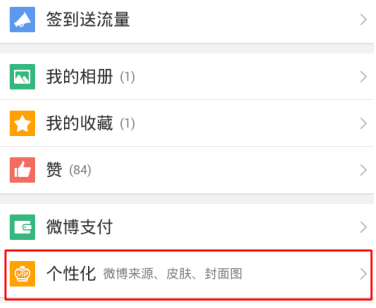 1、打开手机新浪微博,进行登录,点击进入【我】的页面,选择【个性化】选项。