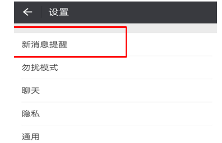 点击进入设置页面,找到“新消息提醒”,如下图所示: