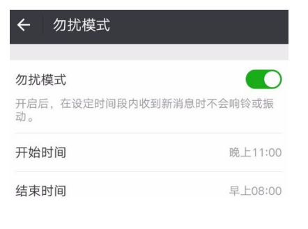 首先在设置里找到“勿扰模式”,根据自己的时间安排进行设置,如下图所示: