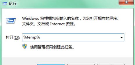 2、键入%temp%,并点击确定,