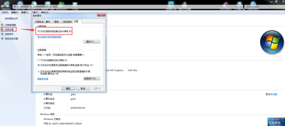 1、首先,在远程的电脑中设置“允许其他电脑远程连接”,