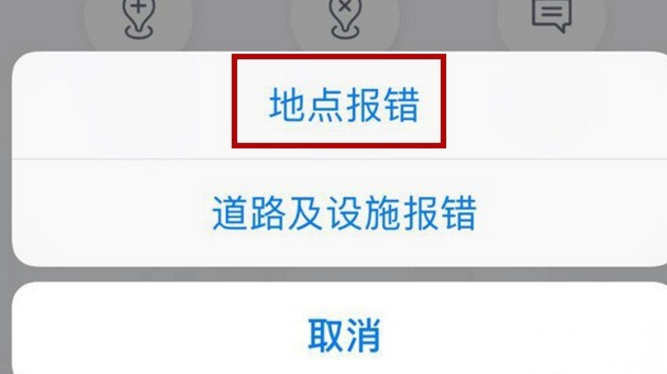 3、在弹出的选择菜单中,点击“地点报错”按钮,