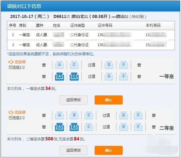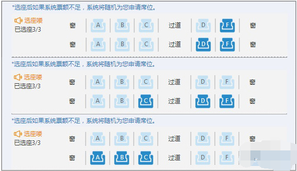 这项功能还有两个小问题,一是当购票人同时选择两种座次时(比如一张一等座一张二等座),自选座功能会失效。再者就是当系统内剩余票数已无法满足自选座要求时,同样也会像以前那样由系统随机分配。