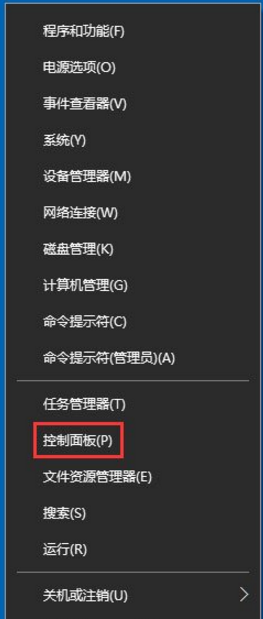 1、右键开始菜单,打开控制面板;