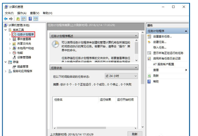4、在打开的“计算机管理”窗口中,找到左侧系统工具下的“任务计划程序”菜单项;