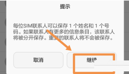 5.点击右下角的全选,选择导出,那么会提示你每位SIM联系人可以保存1个姓名和1个号码,点击继续。