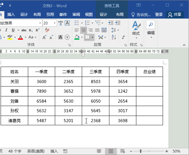 Excel中快速求和可以快速下拉获得结果,但是在Word表格中使用公式时,却不能这么操作,但我们可以使用F4快速完成。