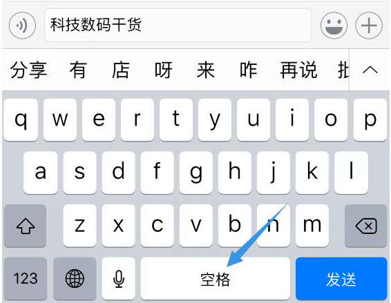 当我们打字结束、要标句号的时候,可能你还会习惯性的点键盘左下角123,呼出符号栏,找到句号。但是现在告诉你,不需要了,这太麻烦了!我们只需要点两次空格键就好,句号就会自动打出来。