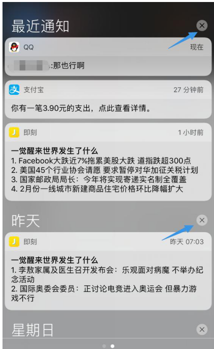 如果隔几天没查看手机消息,通知中心的消息就会很多。比如微信、QQ、其他应用软件的通知,一大堆,恨不得把你手机屏幕的每一个像素点都塞满,如下图所示。那我们还是要一条一条的清除吗?太麻烦了!