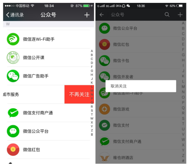 取消请关注不必要的公众号