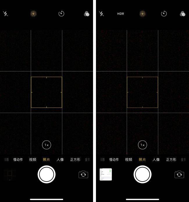 以下是「自动 HDR 」关闭前、后,相机界面的对比: