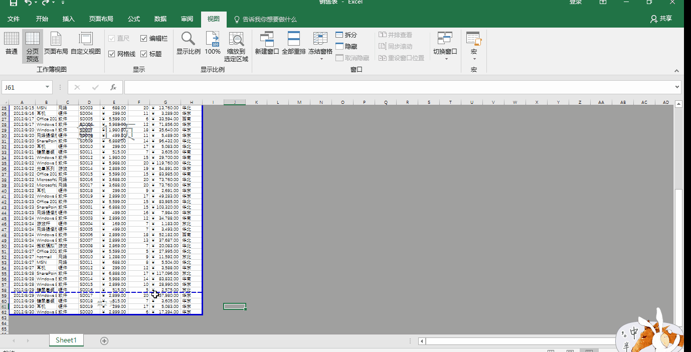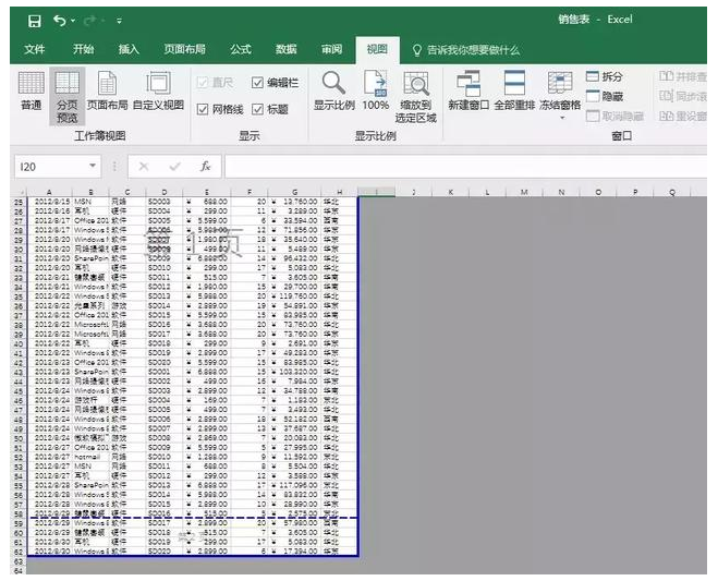 同样的表格,点击“视图”—“分页预览”。