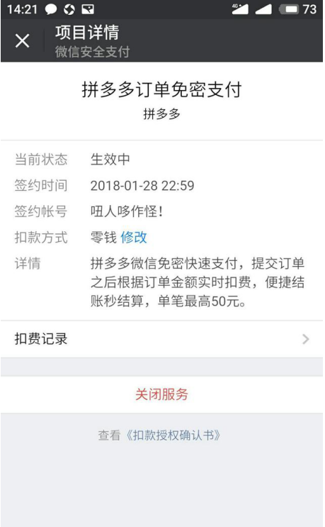 4、然后进去,点击“关闭服务”,这样下次就不会自动扣费了。