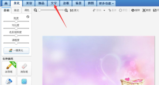 4.打开图片以后,点击上端的文字类别,如图。