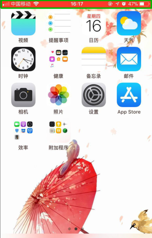 点击录制,回到屏幕主页,会看到手机屏幕顶部变红,说明录制开始了。录制的这个视频会保存在手机相册里。
