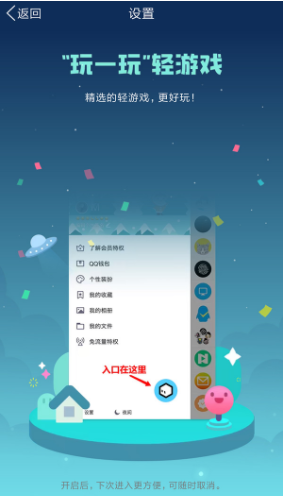 “玩一玩”轻游戏入口,目前在v7.5.8测试版上支持关闭