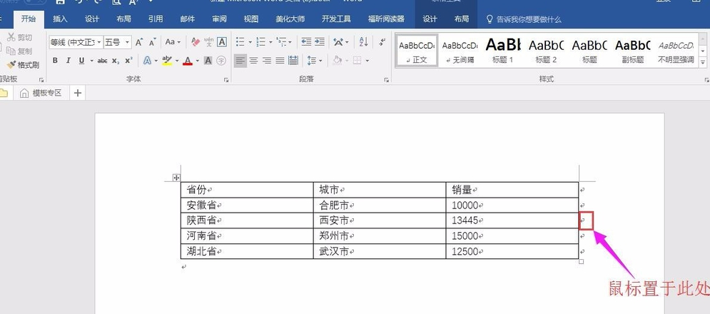 我们只需要将鼠标置于表格指定行后面的换行符前,之后使用回车键即可在下面插入新行。