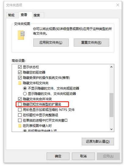 Win7用户则是在“文件夹选项”中,在“查看”选项卡中找到“隐藏一直文件类型的扩展名”,取消勾选就好;