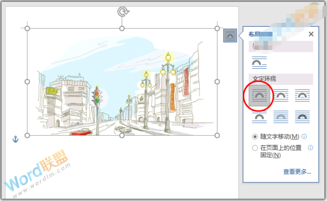 步骤一、素材的话大家可以在网上找些漂亮的图片,插入到Word文档中,然后点击图片,右边会出现一个【布局选项】窗口,我们选择【文字环绕】中的【四周型】。最后,将图片拉伸至页边距顶部、左边、右边一致大小。