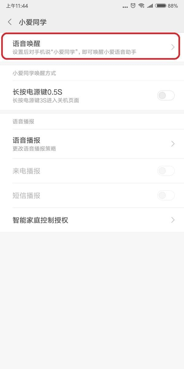 点击语音唤醒,设置后对手机说“小爱同学”,即可唤醒小爱语音助手
