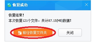 恢复完成,弹出提示信息,点“前往恢复文件夹”,可以到恢复文件夹看刚才恢复的文件。