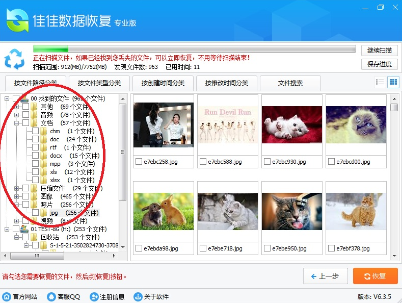 仅用几秒钟,软件已经找到很多删除的文件。