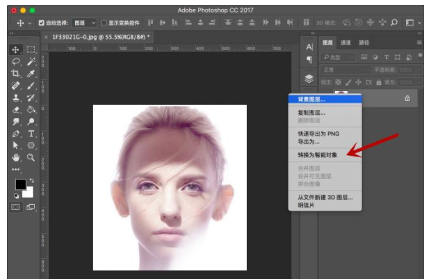2、右键点击背景图层,选择“转换为智能对象”,这样能够保证处理效果。