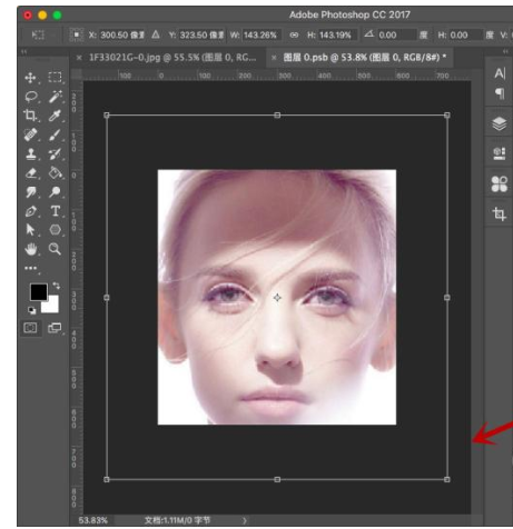 3、按住ctrl+t进入自由变化,将人物头像的比例进行一定调整,按shift+alt进行等比缩放。