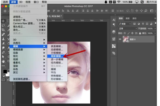 4、点选图层,选择“滤镜-模糊-高斯模糊”。