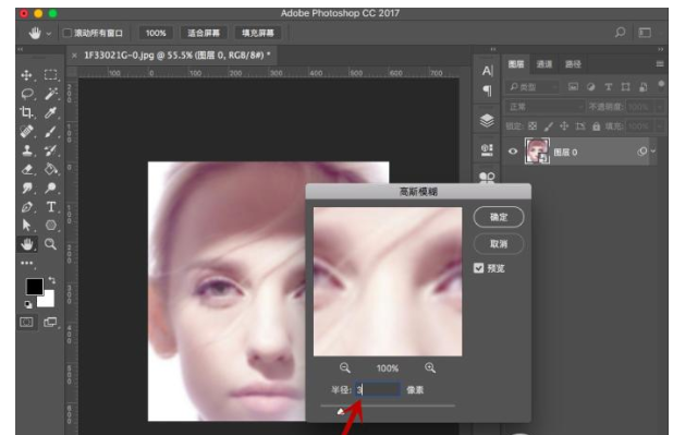 5、在弹框设置中,根据预览效果对半径像素数值进行调整。