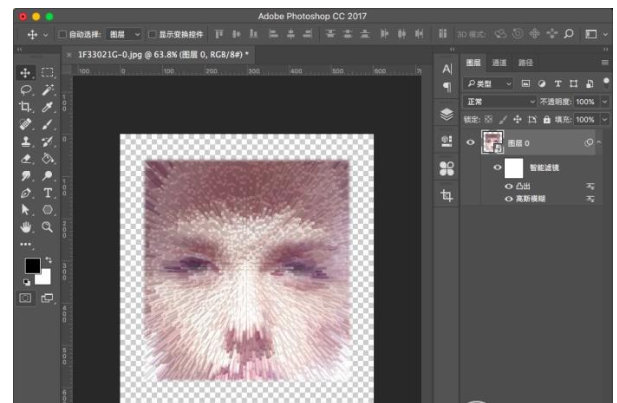8、凸出处理后我们就能看到一个飞射的效果了,还是比较有立体冲击感的,最后还需要调下色彩来让明暗更区别。