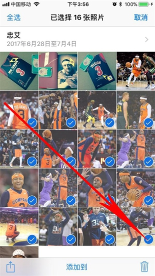 教程2:进入照片,点击右上角选择;在要批量删除的地方,直接画对角线;要想取消某张的选择,再单独点击即可。