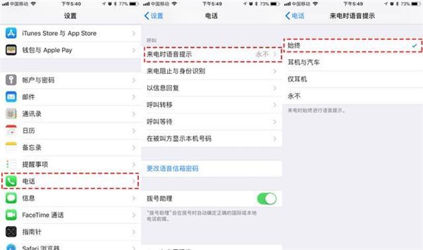 其实iPhone上也有这一功能,教程如下:打开设置—电话—来电语音提示—始终即可。