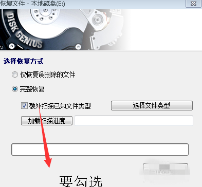 3、如果你知道想恢复文件的类型可以点击选择文件类型,额外扫描已知文件类型也要勾选,