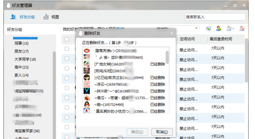删除过程,可以看到删除好友的进程,当然也可以中途取消。