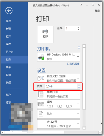 当然,我们也可以组合使用,比如:打印第3页,第5页,第6页,第7页,第8页,第9页,则我们可以输入【3,5-9】。