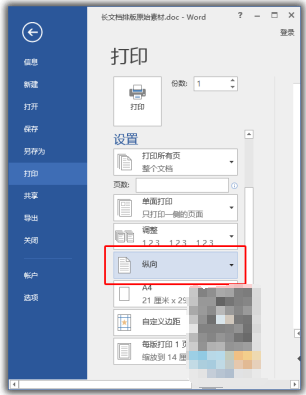 纵向横向打印,我们直接在打印中设置即可。