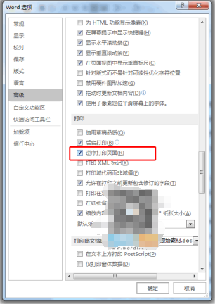 默认情况下Word打印是从第一页开始打印到最后一页,如果打印的纸张过多,我们还会让其打印完成后,一页一页的手动调整顺序。如果我们设置成了逆序打印,就不会那么麻烦了,从最后一页开始打印,打印完成后,最上面刚好是第一页。也非常适合于奇数偶数的双面打印。进入【文件】-【选项】-【高级】,在右边找到【打印】,然后勾选其中的【逆序打印页面】确定即可。